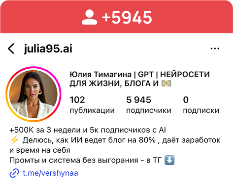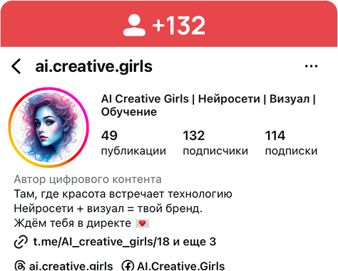 За 1-2 дня ты научишься создавать трендовые нейрофотосессии, полностью упакуешь и преобразишь свой блог, научишься управлять охватами и начнешь находить клиентов уже из существующих подписчиков и своих активов